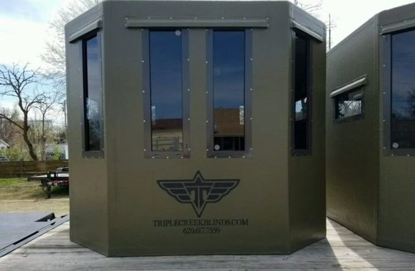 Triple Creek All Fiberglass Blinds. The 360 Hunting Blind ships in a kit form with fully complete individual wall panels to allow for quick and easy two-person assembly on-site. Hunting builds that are built for hunters by hunters with features that will surpass any hunters expectations.